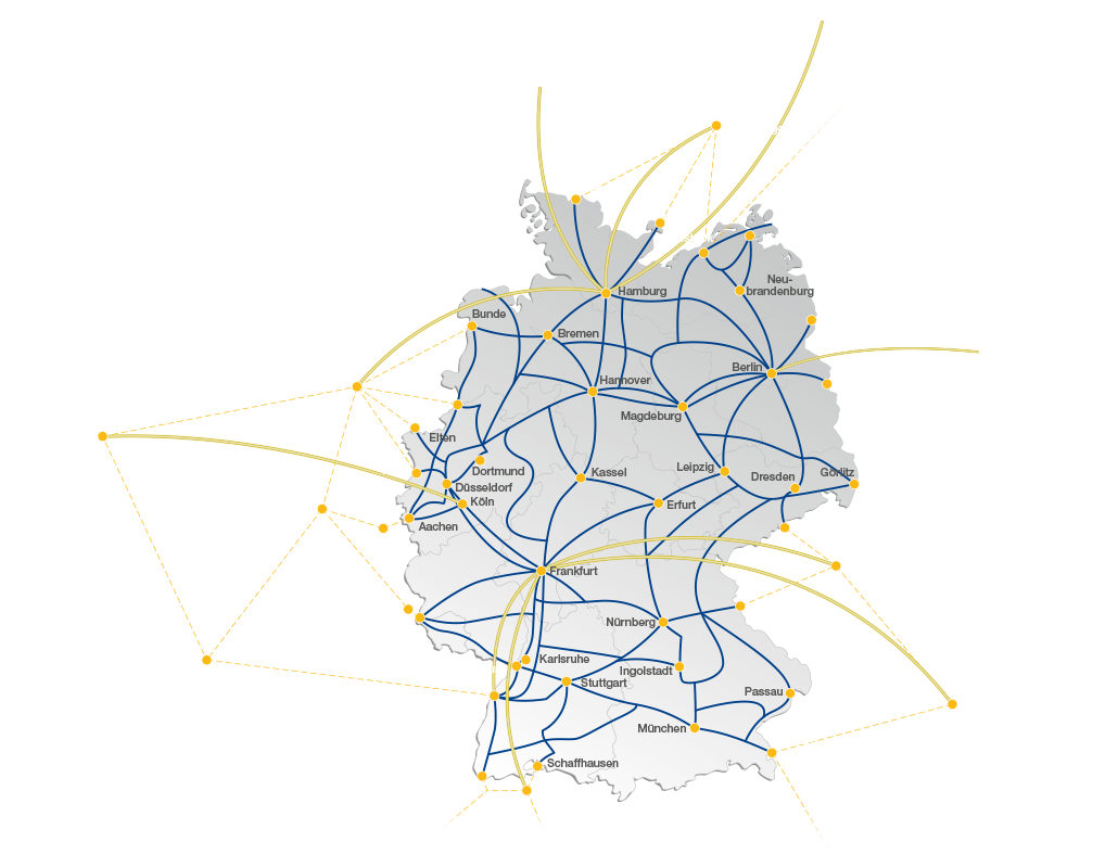 Als One-Stop-Shop bieten wir internationale Anbindungen wie z.B.: